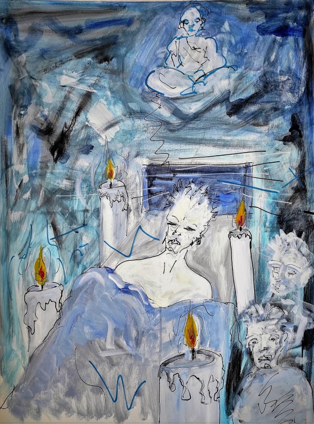 Il y a eu, pendant cet épisode agité, le sentiment d’avoir été violé par un autre patient puis un déplacement de ma conscience dans le cosmos, un fil d’Ariane perdu et retrouvé quand j’entendis pleurer ma fille Marilou.